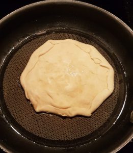 Dans une pôele, on met un fond d’huile (colza ou tournesol osef) et on fait revenir le cheese naan 2min de chaque côté sur feu moyen.